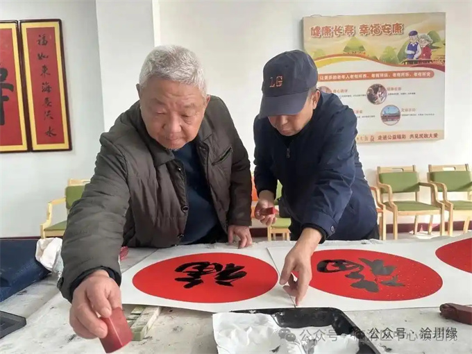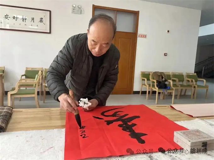 一行行俊逸的书法,一句句吉祥的祝福,在老师们的笔下流淌而出。苍劲有力的“福”字、意蕴悠长的“寿”字,以及一幅幅寓意吉祥、积极向上的书法作品,寄托了对老人们健康长寿、幸福安康的美好祝愿。艺术家们短短时间内,倾情创作了五十余幅精品力作,将这些满载着敬意与祝福的墨宝悉数赠予敬老院与老人们。