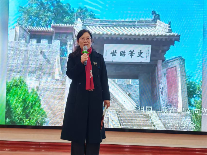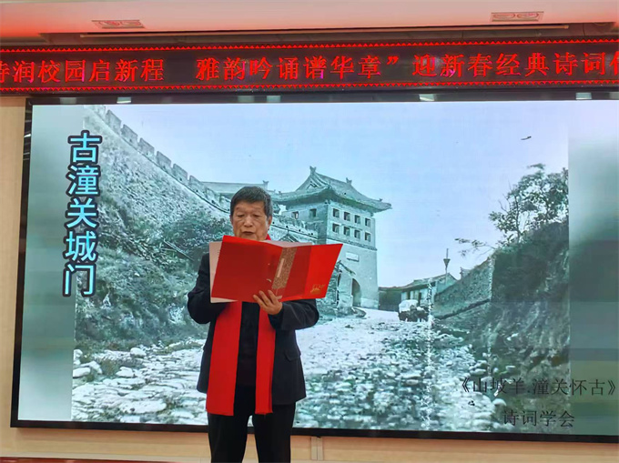 渭南市诗词学会会长邢福和在主旨讲话中深情阐述了渭南深厚的文化底蕴,鼓励师生以诗为友,在诵读经典中汲取精神养分,让诗词之美浸润成长之路。