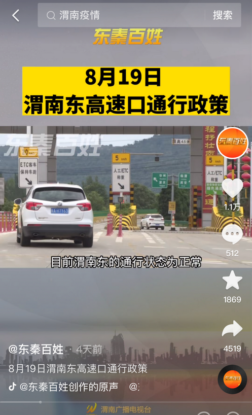 《渭南东高速口通行政策》《为什么对渭南主城区实施临时性管控?》《渭南市纪委监委通报三起违反疫情防控纪律典型问题》播放量均超100万+。回应群众关切,引导市民遵守抗疫管理,共同维护社会秩序。