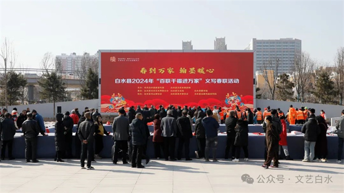 为深入学习贯彻习近平文化思想,丰富城乡群众春节文化生活,1月29日,由中共白水县委宣传部、县文化和旅游局主办,县文联、县文化馆、县图书馆承办,县书法家协会、县美术家协会、仓颉书画研究院协办的“白水县2024年“百联千福进万家”文化志愿者义写春联活动”在白水公园举行。