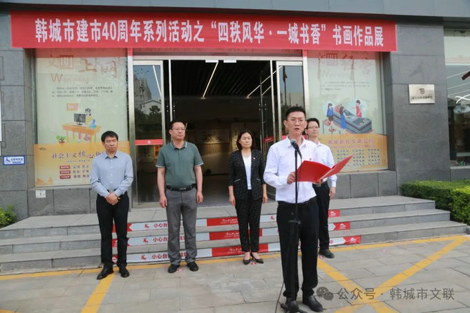 翰墨四十载,丹青绘书城。5月11日,韩城市建市40周年系列活动之“四秩风华·一城书香”书画作品展在市新时代文明实践中心开展,以书画艺术形式向建市40周年献礼,一笔一墨讴歌40年的奋斗历程,一字一画勾勒韩城的美好未来。市委常委、宣传部部长毋晓维,市政协副主席贾耀斌、陈玉振,以及各镇办、部门、单位分管领导和文联各学协会负责人、部分参展作品作者130余人参加。开展仪式由市委宣传部常务副部长高少武主持。