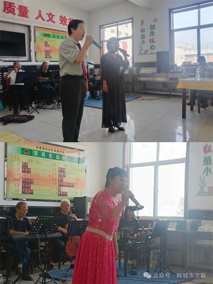 为庆祝建军97周年,进一步增进军民鱼水情谊,推动文艺“六进”志愿服务活动走深走实。8月1日,市文联组织韩城市书画志愿者协会(市香山书画院)联合风追司马艺术团来到武警韩城中队,举办了“军民联欢庆‘八一’ 拥军爱兵壮军威”文艺“六进”文艺志愿服务活动,为部队官兵送去一幅幅精心创作的书画作品,用优美动听的歌声颂扬人民军队的丰功伟绩。