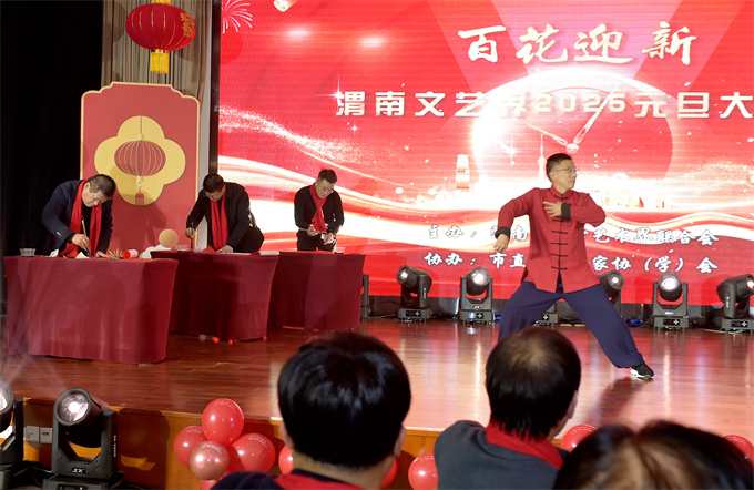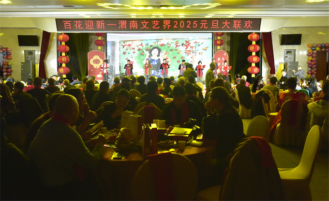 风吹腊梅枝头绽,百花育蕾迎春来。12月20日下午,由渭南市文联主办,十九个市直文艺家协(学)会协办的“百花迎新——渭南文艺界2025元旦大联欢”活动在渭南光明大酒店成功举办。此次文联系统的大联欢活动旨在同叙情谊、汇聚一心,回顾过去,展望未来,共襄渭南文艺“百花齐放、百家争鸣”的盛举。原市级有关老领导、市文联历任领导、市文联现任领导班子、机关全体人员以及市直各文艺家协(学)会主席团成员、县(市)文联负责人等近300人参加了文艺大联欢活动。