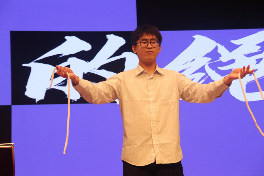 紧接着,来自西安交通大学的“华山戏法”青年演员轮番上阵,带来了《六连环》《神秘来信》《玫瑰低语》《心灵之旅》《超级爆米花》等多个精彩节目。环环相扣的巧思、变幻莫测的手法,让村民们看得目不转睛,不时报以热烈的掌声。