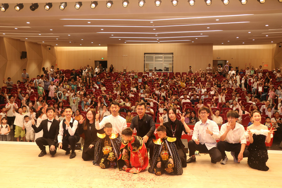 演出中,“华山戏法”第五代传承人贾博涛、雷霖带来“华山戏法”经典节目《鸳鸯棒》,他们默契配合,完美演绎出“华山戏法”的独特魅力。来自西安交通大学的“华山戏法”青年演员带来的精彩节目《选择》《跳动的绳结》《幸福》等,幽默的语言、精妙的手法令现场观众啧啧称奇。表演过程中,表演者还不时邀请家长和小朋友们上台互动,手把手教他们体验“魔术”的乐趣,台上台下笑声不断,气氛热烈。