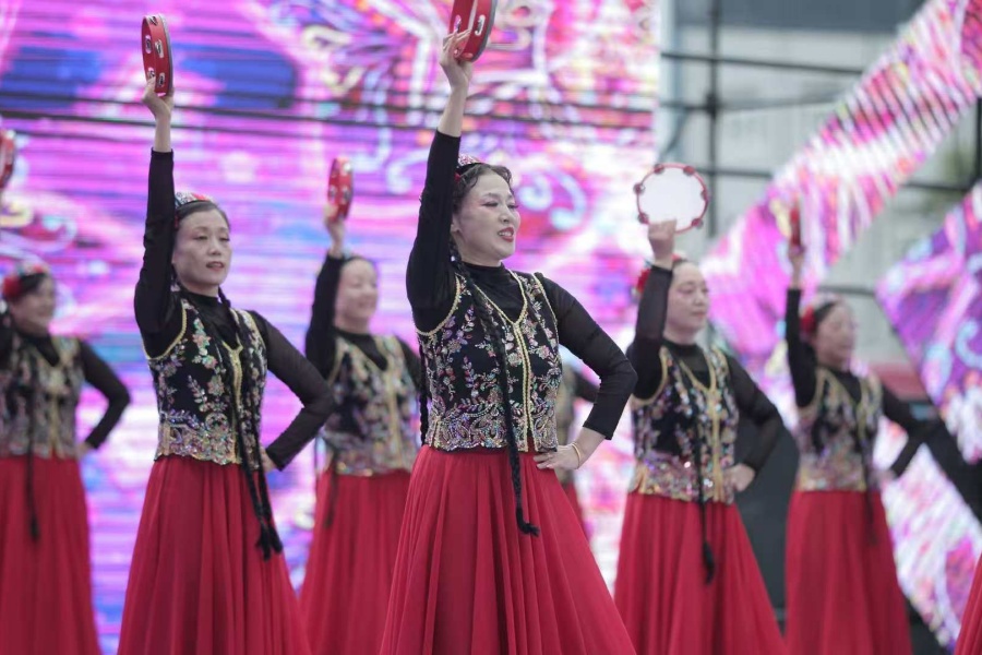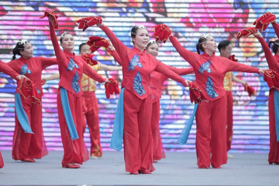 十二支队伍依次上场,演绎多元舞韵。《山海情深》《红船向未来》《中华儿女一家亲》……每一支舞蹈都各具特色。充满青春活力的《尊巴舞DADDY》,将尊巴的热情张扬展现得淋漓尽致;编排大气的《腾飞的中国》,舞出了对祖国发展的赞颂;《我在高山唱》《黄河源头》则融入地域文化特色,用舞姿讲述高山风情和黄河故事。《丰收·果香》《舞动枣乡》以农耕与地域特产为灵感,跳出了乡村振兴的喜悦与丰收的甜蜜;《唱支山歌给党听》《盛世秧歌扭起来》《山丹丹开花红艳艳》更是以经典旋律和传统秧歌形式,传递出盛世欢歌及人民对党的感恩之情。