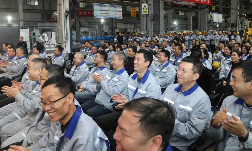 演出间隙,陈龙、杨建军等书画家为企业送上了三幅饱含深意的作品:一幅以苍劲书法写下“匠心制造 树立标杆”,呼应企业在印刷机械领域精益求精的追求;一幅书就“国际领先”四个大字,精准契合其技术攻关、对标世界的发展目标;还有一幅水墨山水画,以层峦叠嶂的意境隐喻企业勇攀高峰的格局。随后,华山戏法《三仙归洞》在职工们的近距离围观下上演,道具的奇妙变幻让车间里满是惊叹;秦腔《三滴血》选段刚唱完,职工们便齐声喊“再来一段”,演员随即加唱了《周仁回府》选段,熟悉的唱腔让现场更添热闹;二重唱《复兴的力量》激昂旋律响起时,更有人不自觉地打起了节拍。最终,歌伴舞《乘风破浪再出发》以蓬勃气势收尾,职工们的掌声与欢呼声,在车间里久久回荡。