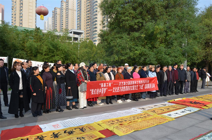 岁岁重阳,今又重阳。在重阳佳节来临之际,为传承尊老、敬老、爱老的中华优良传统,10月26日,由渭南市文联主办,渭南市老年书画家协会携手金水书苑共同举办“九九重阳 浓浓敬老情”重阳节惠民书画展,数十位老年书画家与书画爱好者齐聚一堂,以笔为媒、以墨寄情,在笔墨挥洒间书写敬老情怀,为佳节添彩、为长者送福。