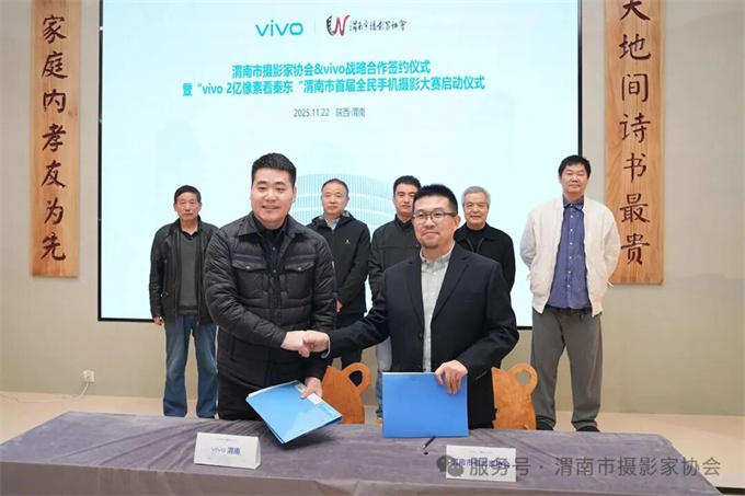 活动现场亮点十足:渭南市摄影家协会与vivo的战略合作签约,为跨界赋能渭南摄影事业揭开新篇章!双方将以摄影为桥,通过举办高质量采风和展览、开展专业摄影培训,让更多市民爱上摄影、学会摄影,用手机定格美好生活、用影像讲好渭南故事,既助力本土文化传播,也推动手机摄影艺术普及,共同书写渭南摄影发展新篇。