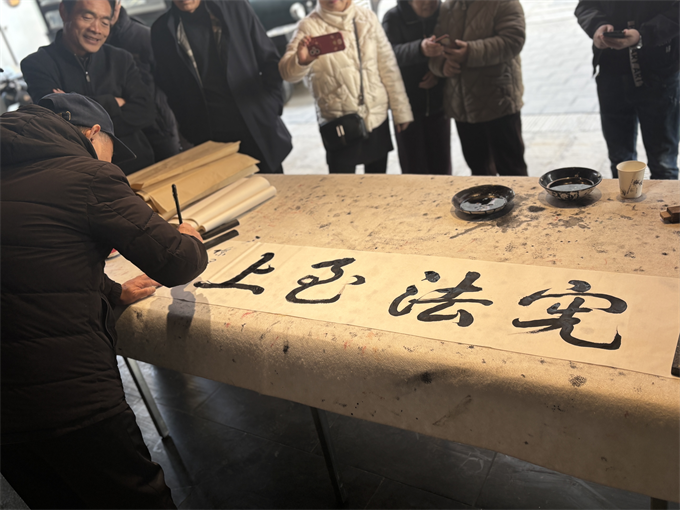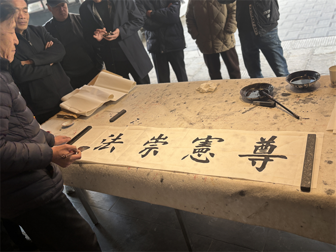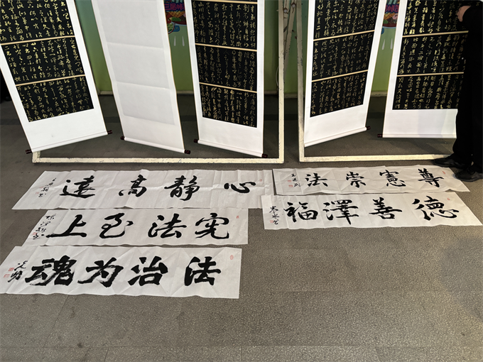 活动现场,黄河书画院的老师们现场提笔创作。法治名言警句随着笔墨流转跃然纸上,一幅幅笔力沉稳的书法作品,既透着传统书画的韵味,又饱含法治宣传的深意。这样的普法形式格外吸睛,不少路过的群众纷纷停下脚步围观,一边欣赏作品,一边和身边人交流,现场氛围热烈又融洽。