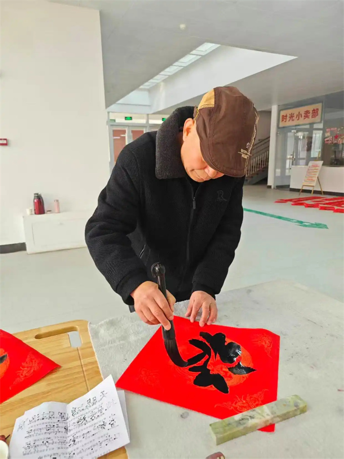 “这画真好看,牡丹和寿桃,看着就喜庆!”一位捧着董玲玲老师画作的老人高兴地说。另一位老人则对魏战民老师的月季兰花图爱不释手:“挂在房间里,每天看着心情都好。”敬老院的活动室内欢声笑语,春联、福字和画作铺满大厅,红色的喜庆与墨香的雅致交织在一起,构成了一幅温馨动人的画面。