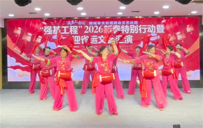 为深入学习贯彻市委书记王浩在“送温暖、办实事”活动中“办好顺民意惠民生暖民心实事”的重要指示精神,扎实推进“强基工程”文艺助力基层精神文明建设,营造喜迎省运的浓厚社会氛围,1月20日,由韩城市文学艺术界联合会、渭南市民间文艺家协会等共同举办、韩城市桢州金色艺术团联合承办的“强基工程”2026新春特别行动暨迎省运文艺汇演在韩城市文化馆成功举办。整场活动以文艺为桥,将党的温暖与新春祝福送到群众心坎上,以昂扬向上的精神风貌迎接省运盛会。