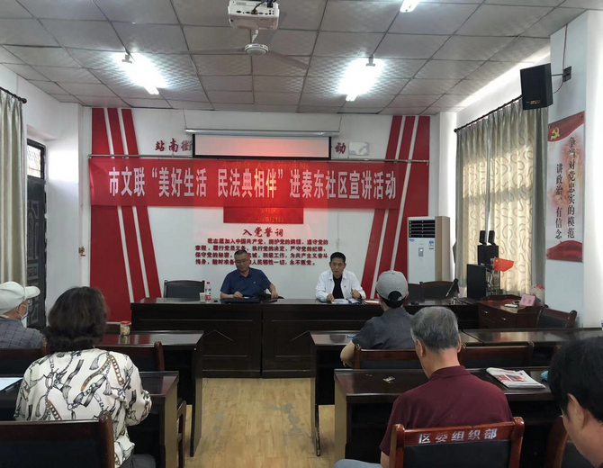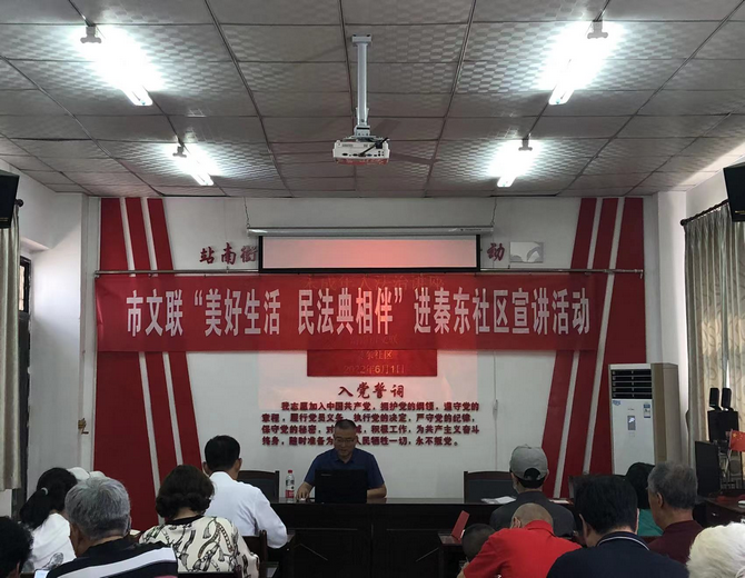 6月1日,为深入学习贯彻习近平法治思想,特别是习近平总书记关于民法典学习宣传的重要指示精神,让民法典走到群众身边,走进群众心里,让社区老百姓都能学法懂法用法,促进社区精神文明建设,市文联根据渭南市依法治市委员会、市创建办及文联党建联系点的实际需要,精心组织实施了“美好生活 民法典相伴”普法宣传进秦东社区活动。
