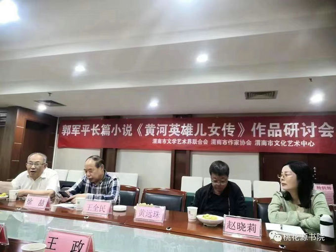 10月2日,由渭南市文联、渭南市作家协会、渭南市文化艺术中心举办的作家郭军平长篇小说《黄河英雄儿女传》研讨会在恒昌王子酒店召开。市作协顾问路树军,市作协副主席传凌云、菊延宏,临渭区作协名誉主席邢福和,高新区作协名誉主席赵治安,澄城县作协主席赵晓莉,澄城中学常务副校长黄远珠,市作协副秘书长杨少林、徐杏花,临渭区作协副主席张娟,临渭区作协秘书长刘莉萍,澄城作协副主席王政等参加上述活动。