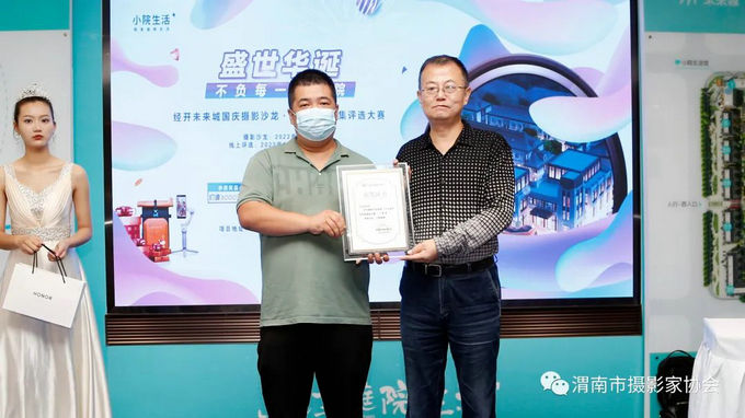 渭南小院新能源住宅发展有限公司项目主管薛鹏为获奖者颁发荣誉证书