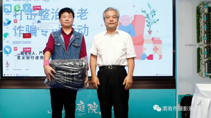 渭南市摄影家协会名誉主席史新民为获奖者颁发奖品