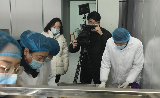 在谦顺公司车间,会员们结合生产流程、生产工艺就拍摄、调度、灯光、录音等进行示范和讲解。