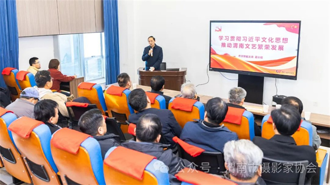 会上,渭南市文学艺术界联合会副主席葛长明带领大家深入学习习近平文化思想,强调“以文化人,以文育人”。并对2024年摄影家们的创作方向、创作思路进行规划,鼓励大家多下功夫,多创佳绩。