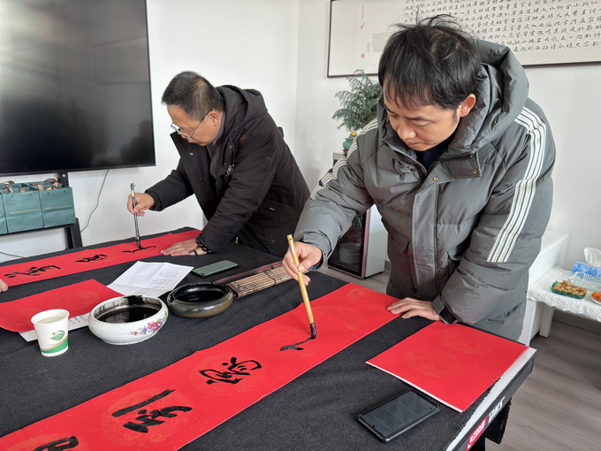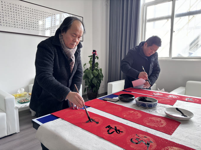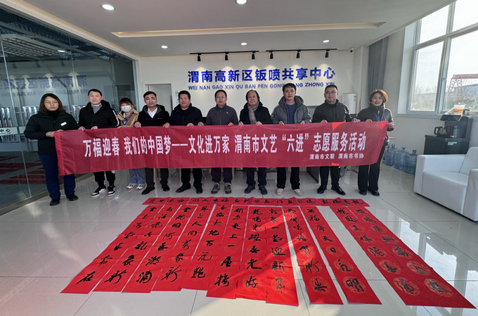 翰墨飘香迎新春,义写春联送祝福。新春佳节来临之际,为弘扬优秀传统文化,丰富群众文化生活,营造浓厚的节日氛围,1月23日,渭南市文联组织我市书法工作者开展文艺“六进”志愿服务活动走进渭南高新区钣喷共享中心。