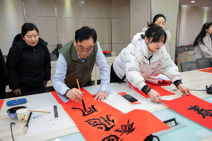 在活动中,书法家们热情高涨,挥毫泼墨,运笔酣畅圆润、行云流水,一副副火红的春联传递着新春的问候,承载着新年的祝福,洋溢着喜庆和谐的节日气氛。