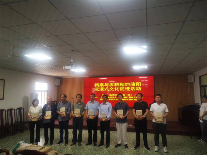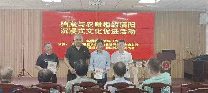 4月28日,由临渭区档案局主办,渭南市楹联学会、长安银行渭南北塘支行、蔺店镇蒲阳村两委承办的“档案与农耕相约蒲阳” 沉浸式文化促进活动在蒲阳文化中心举行。