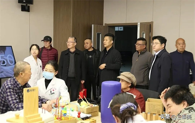 书画家们在临渭区中医医院领导的陪同下,参观了医院的门诊大厅、国医楼、康复等特色科室及医养中心部分区域,听取了院领导关于老年健康服务体系特别是“医疗+养老”融合发展模式的介绍。