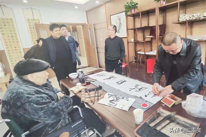 随后,书画家们走进医养中心书画室,迅速投入到创作之中,他们研墨调色,挥毫泼墨,神情专注,笔走龙蛇:或描绘壮丽山河,或书写吉祥福寿,一幅幅意境深远的水墨画,一张张笔力遒劲的书法作品渐次呈现。创作过程中,坐着轮椅的老人围拢过来饶有兴致地观看,并与书画家互动交流。