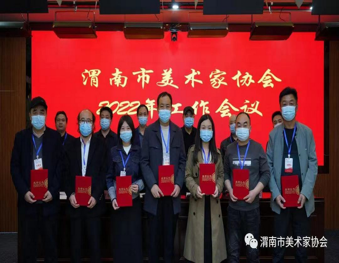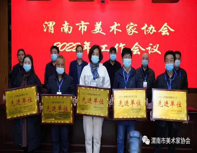 会上市美协主席党宽阳做2022年工作报告并表彰2021年度渭南市美协先进单位,2021年度渭南市美协先进个人。