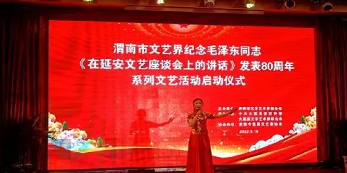 5月18日,由渭南市文学艺术界联合会主办,中共大荔县委宣传部、大荔县文学艺术界联合会承办,渭南市直属文艺家协会协办的渭南市文艺界纪念毛泽东同志《在延安文艺座谈会上的讲话》发表80周年系列文艺活动在大荔县启动。